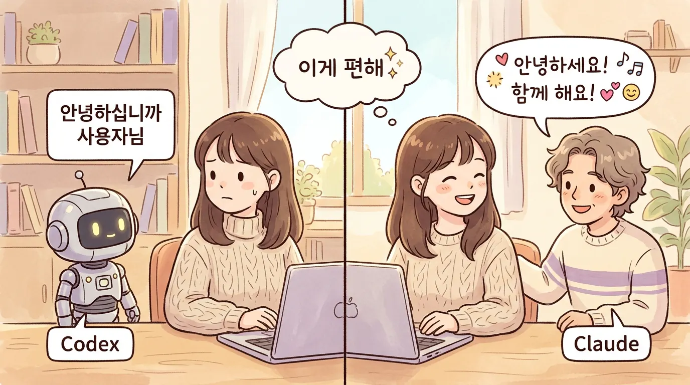 핵심: 한국어로 일하는 사람이라면 Claude Code가 훨씬 자연스럽습니다. 아이러니하게도 개발 성능보다 말투가 선택을 결정하더라고요.