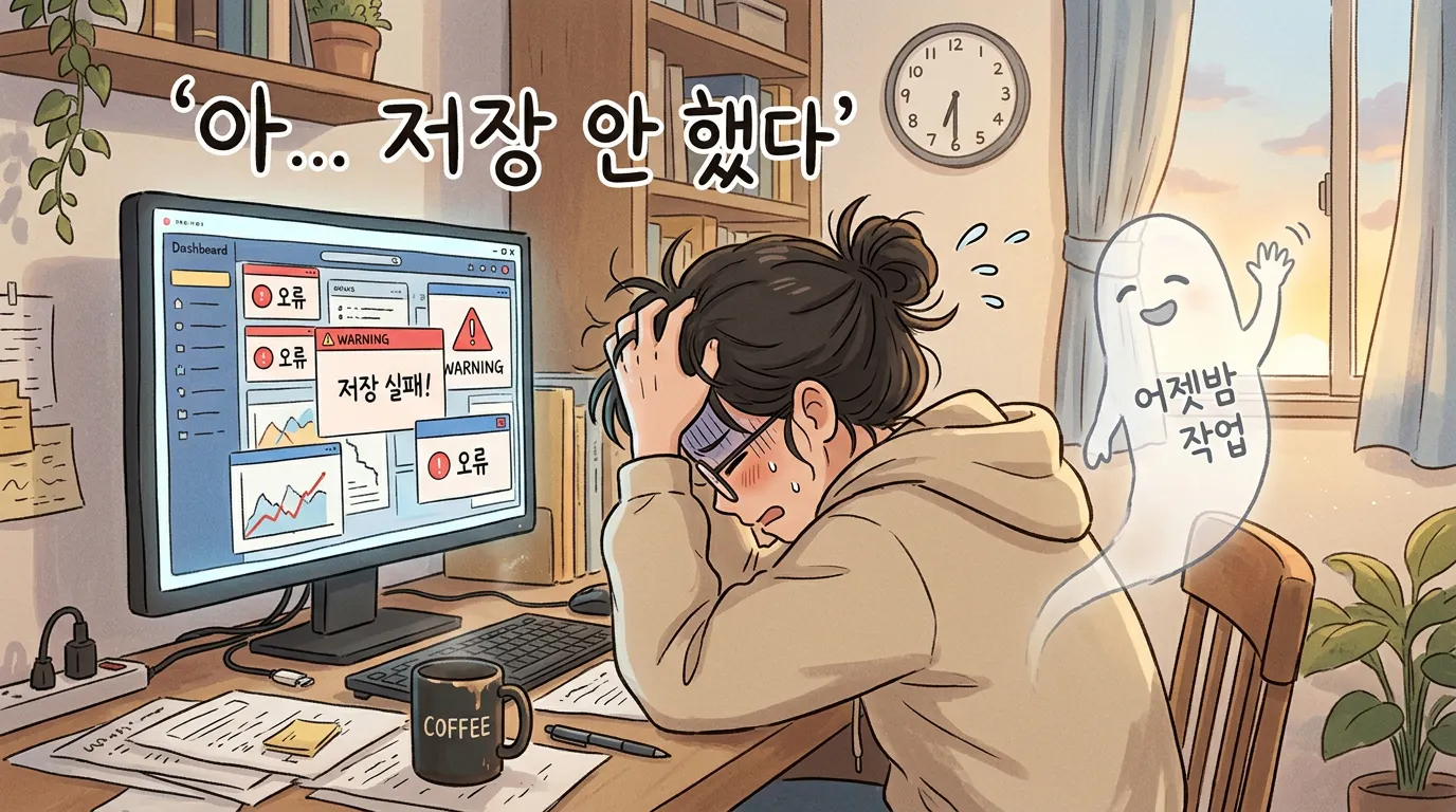 디자이너한테 밤새 대시보드 수정을 시켰는데, 아침에 깜빡하고 개발자한테 "이거 왜 이렇죠?" 했다가 싹 다 엎어졌습니다. 백업 없이 로컬에서만 작업하다 발생한 참사였죠.