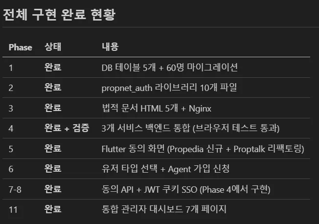 @propnet-coo PropNet 통합 인증 시스템을 구현해야 해. 플랜 파일은 C:\Users\ant19.claude\plans\sunny-moseying-galaxy.md 에 있어. Phase 1부터 순서대로 진행해줘.진행 계획을 세워주고,