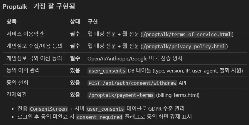 - 서비스 간 디자인 일관성 (Proptalk ConsentScreen 기준)