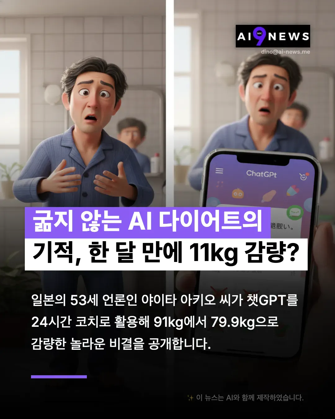일본의 한 기자분이 챗GPT를 24시간 식단 코치로 활용해 무려 11kg을 감량하셨다고 하네요.