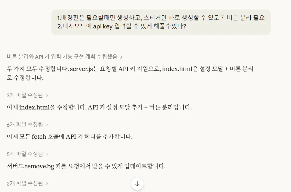 API를 대시보드에 넣어달라고 하는김에, 스티커만 따로 생성하도록 버튼도 분리해달라고 합니다.