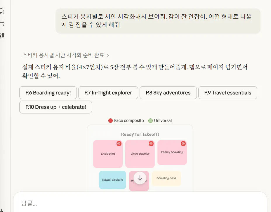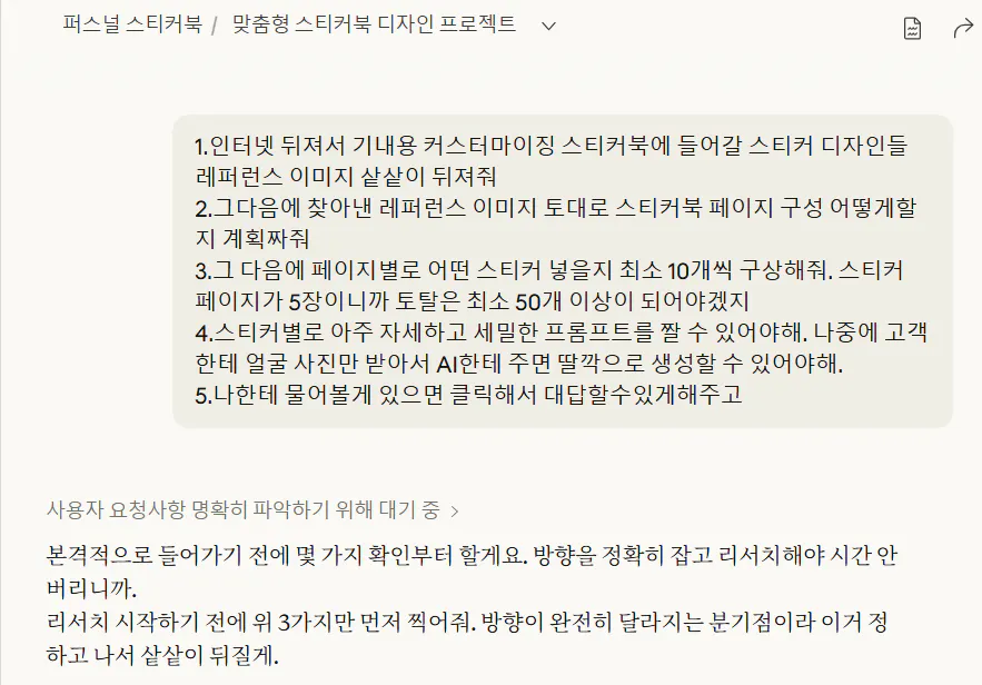 퍼스널 스티커북 페이지를 만들기 위한 프롬프트를 제작해달라고 합니다.