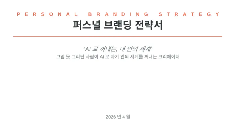 특히 AI를 분석 도구로만 쓰지 않고, 자기검열을 우회해 내면의 언어를 끌어내는 대화 파트너로 활용한 점이 묘랑님 답달까? 너무나 탁월했어요. ‘평범함’과 ‘느림’을 약점이 아니라 브랜드의 질감으로 전환한 시선도 너무 좋았고요 😊 아직 결과물보다 정체성을 먼저 정직하게 붙잡았다는 점에서, 이미 브랜딩의 가장 어려운 첫 관문을 넘으신 것 같아요. 이런 기록이 결국 비슷한 두려움을 가진 사람들에게 큰 용기가 될 거예요. 같이 천천히, 그런데 분명하게 앞으로 가보면 좋겠습니다 ✨